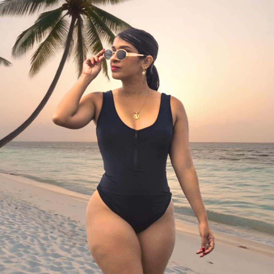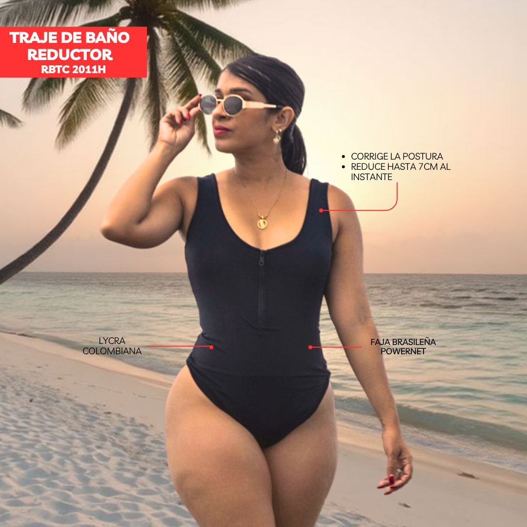 TRAJE DE BAÑO CON FAJA - COLECCION MODA RBTC2011H NEGRO (ENTREGA INMEDIATA)